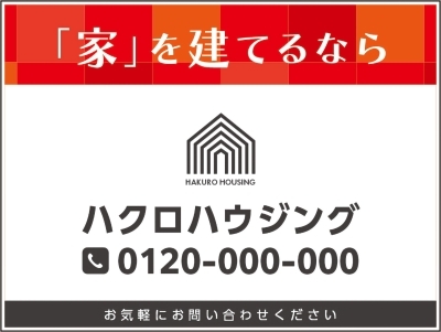 この社名看板は、「家を建てるなら」という明快なキャッチコピーをトップに配置し、視認性と訴求力に優れています。赤を基調としたグラデーションの背景が、温かみと情熱を表現しながら注目を集め、見る人の目を引きつけます。整理されたレイアウトと洗練された配色で、住宅建築に対する信頼と期待を感じさせる効果的な看板デザインです。社名、電話番号はもちろん内容も自由に変えられます。住所も入れられます。