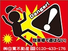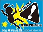 ポップなピンク系のカラーに、黒い影で「人」と「標識」をデザインしています。人が驚く様子や、ぶつかった衝撃など、デザイン画の中でもわかりやすく伝えています。またあえて英語で「Danger!」と記載することで、若者向けのデザインに。駐車場看板が多い地域にあっても、パッと目立ちます。